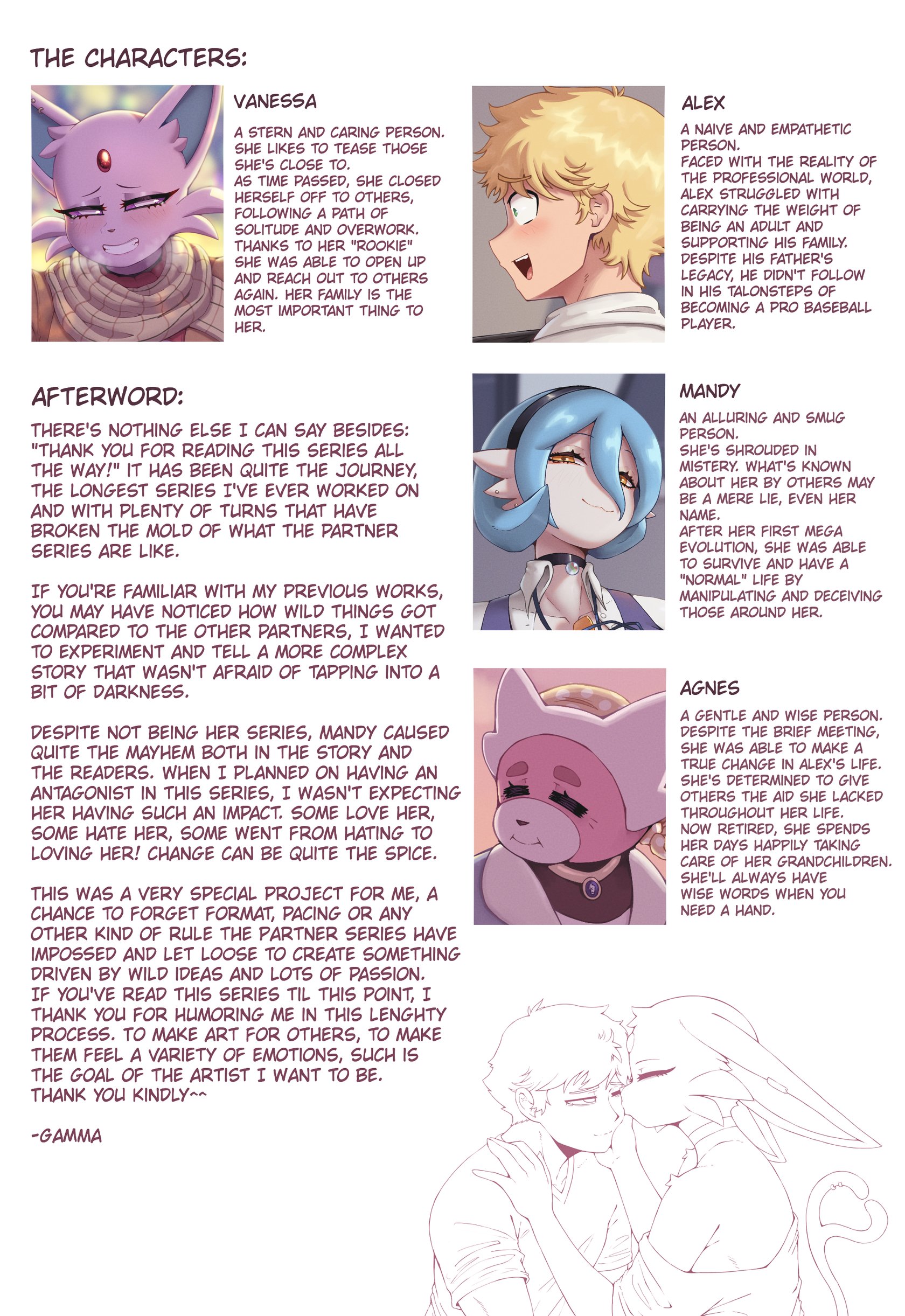 The whole comic (or what we’ve got so far) is available on e621. It’s better to read it there instead of relying on this page for the story.